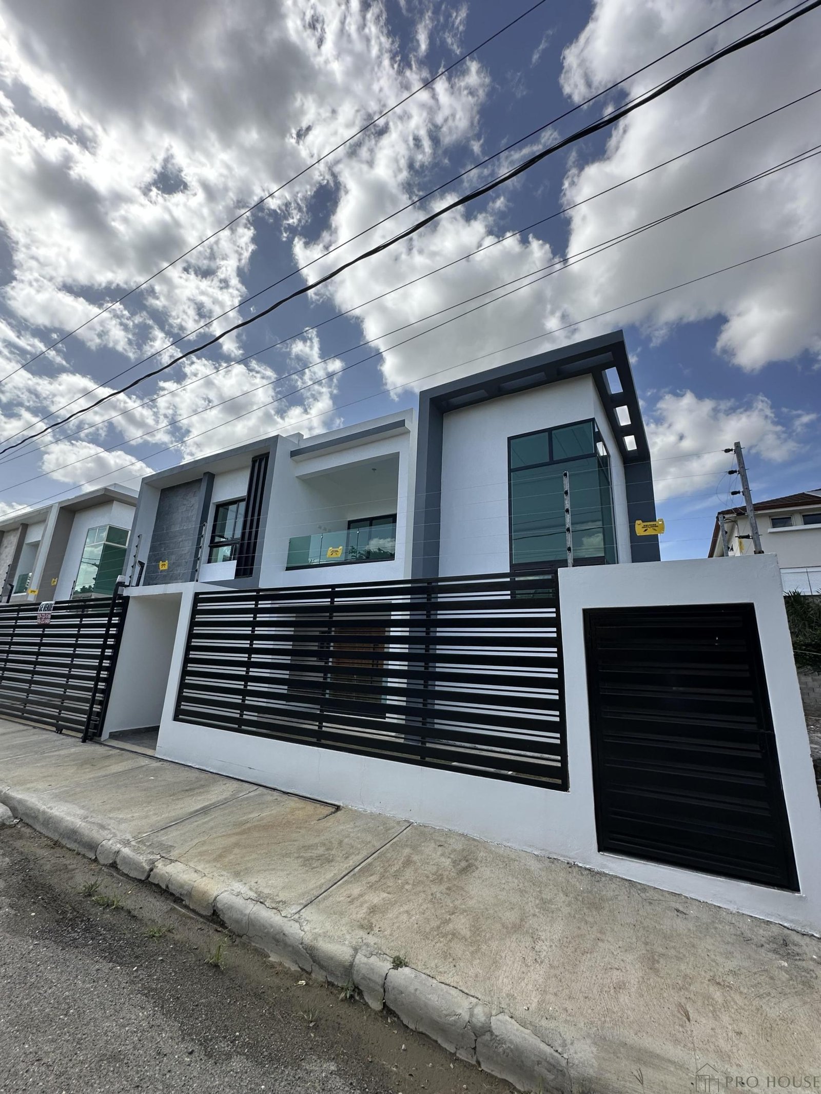 Recibidor, amplia sala, comedor, baño de visitas, cocina fría y caliente, habitación de visitas, habitación de servicio, área de lavado, terraza y patio. Marquesina para 4 vehículos.